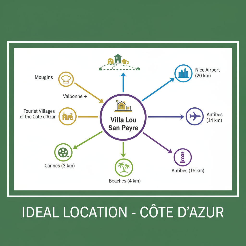 Experience the best of the Riviera from this stylish family villa, perfectly set between glamorous Cannes and charming Mougins. Only minutes from sandy beaches and vibrant markets, the villa offers the ultimate Côte d’Azur lifestyle. Enjoy sun-soaked days by the amazing pool, relax in the chic garden, or explore the Mediterranean coast. With secure, family-friendly features and a prime location close to Cannes’ luxury and Mougins’ beauty, this is your unforgettable South of France escape!